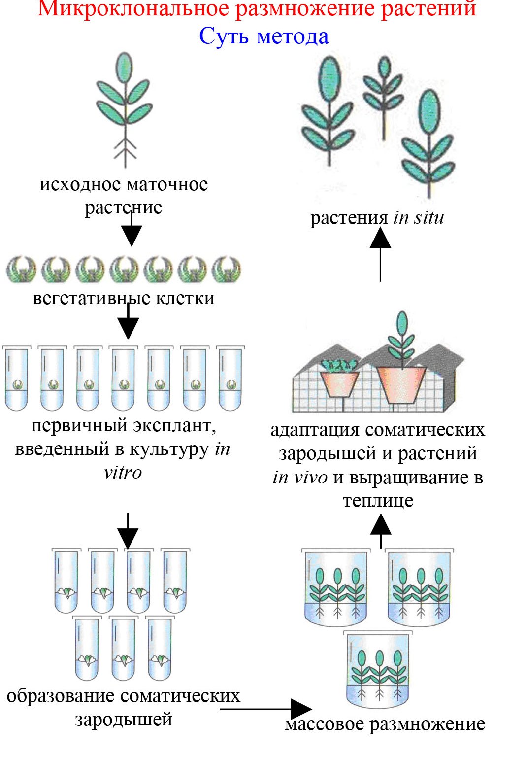 Розмноження in vitro (мікроклонування) - вегетативне розмноження рослин з клітин материнського організму, базується на явищі тотіпотентності (здатності з однієї клітини створити цілий новий організм).